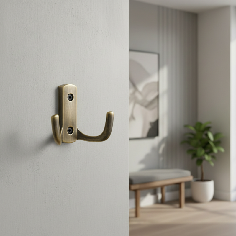 Kompakt méreteit praktikus dupla akasztóval ötvözi, így ideális ruhák, törölközők, táskák vagy kisebb kiegészítők felakasztására.