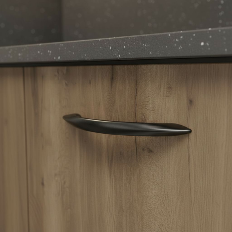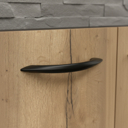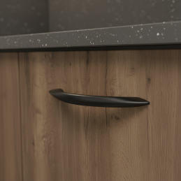 A KINGSTON fogantyú elegáns fekete matt kivitelben letisztult, modern dizájnt és időtlen ívelt formát kínál. Alkalmas konyhai, fürdőszobai és lakószobai bútorokhoz is, és az okosan kialakított ívnek köszönhetően kényelmes, ergonomikus fogást biztosít. A matt fekete felület hangsúlyozza modern karakterét, és markáns, stílusos akcentust ad a bútornak.