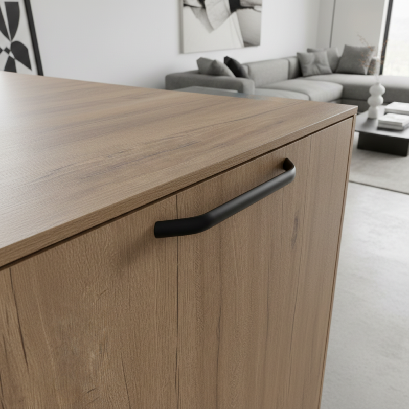 A DIVA fogantyú egy modern és elegáns dizájnelem, amely luxus és időtlen megjelenést kölcsönöz bútorainak. Vékony, finoman lekerekített formájának köszönhetően visszafogott, mégis nagyon stílusos hatást kelt. A fekete matt felület rendkívül népszerű a modern enteriőrökben – remekül illik fához, fehér bútorhoz és beton dekorációkhoz is.