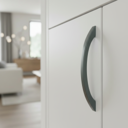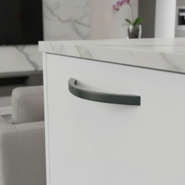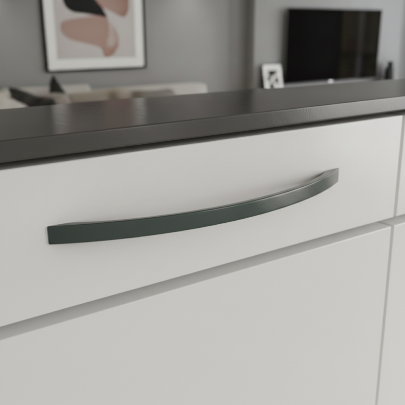 Elegáns EMILIO fogantyú modern matt zöld kivitelben, amely kivételes kiegészítője lehet annak a bútornak, amely első pillantásra meg szeretné ragadni a figyelmet. Ez a szokatlan, de nagyon stílusos árnyalat friss dizájnakcentust ad a konyhának, fürdőszobának, komódnak vagy nappali összeállításnak.