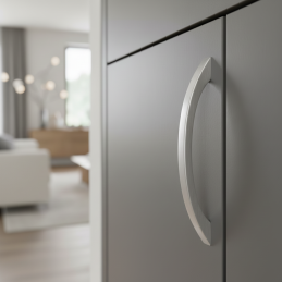 Elegáns fogantyú EMILIO modern alumíniumban, kiváló minőségű alumíniumból készült, amely alacsony súlyt, nagy tartósságot és hosszú élettartamot biztosít. Enyhén ívelt formája kényelmes fogást nyújt, és egyszerre modern és időtlen hatást kelt.