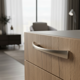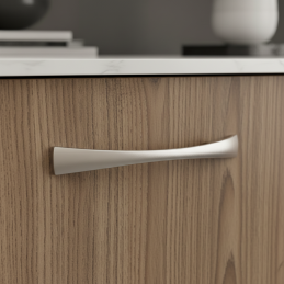 A matt nikkel rendkívül sokoldalú és időtálló. A SIMPLO fogantyú ebben a felületben kiemeli a bútor letisztult vonalait, elegáns, modern megjelenést kölcsönöz neki, miközben maximális kényelmet biztosít használat közben.