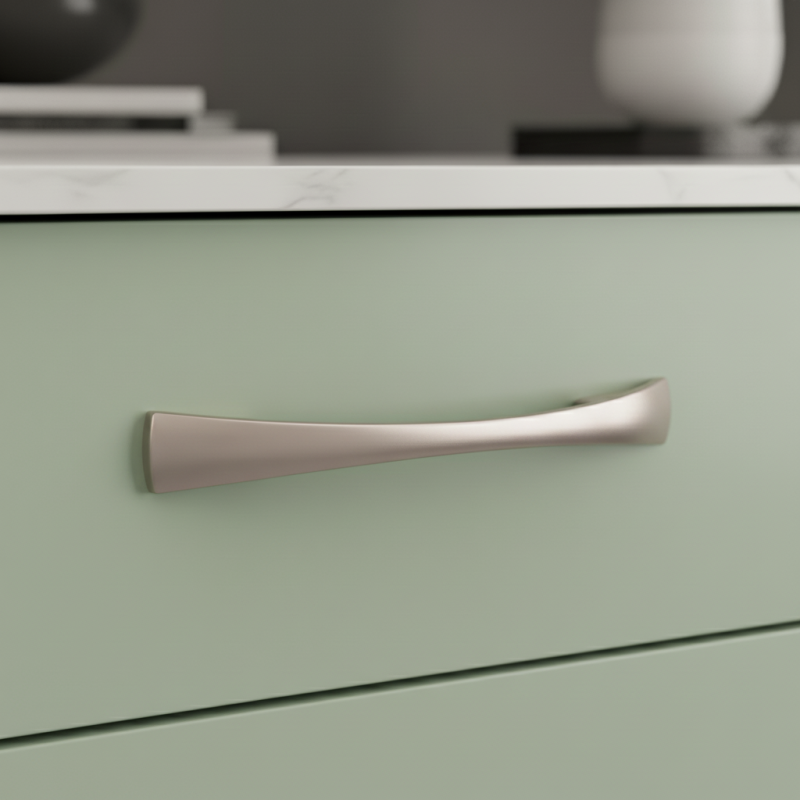 Matt nikkel – univerzális, visszafogott és modern felület, amelyen nem látszanak az ujjlenyomatok, és tökéletesen illik a legtöbb bútor dekorhoz.