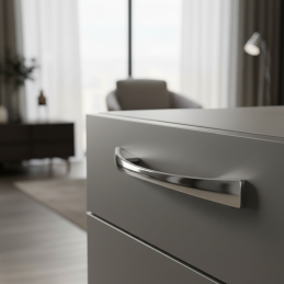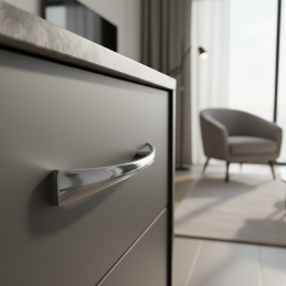 A fényes króm univerzális, elegáns és időtlen. A SIMPLO fogantyú ebben a kivitelben kiemeli a bútor letisztult vonalait, és modern, enyhén luxus karaktert kölcsönöz neki.