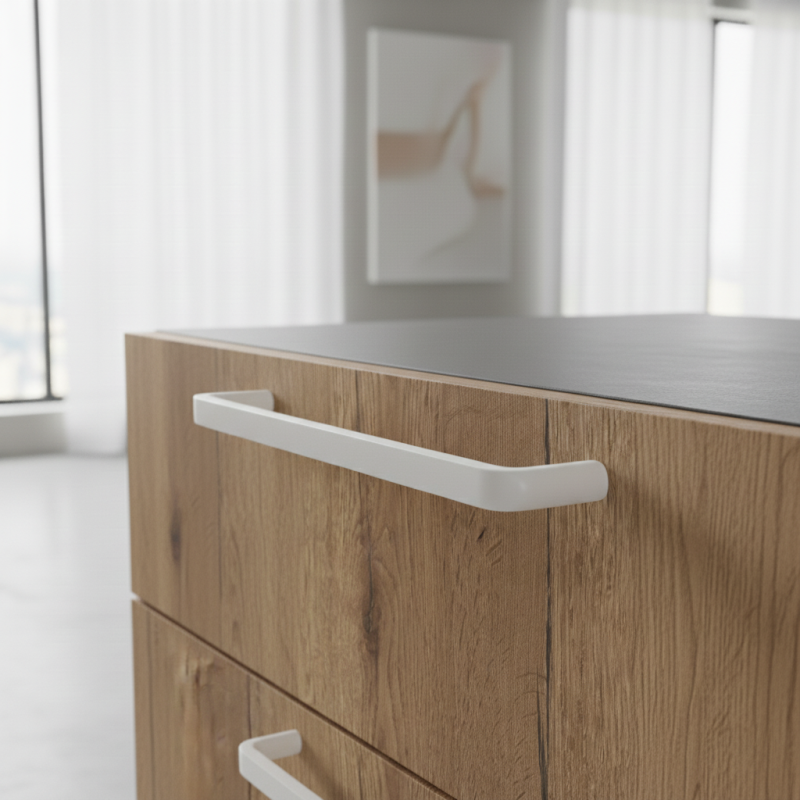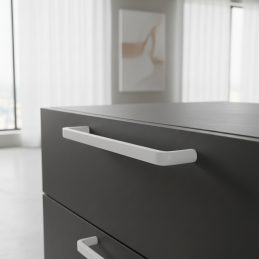 A modern és univerzális BRISA fogantyú matt fehér kivitelben ideális kiegészítő a skandináv, minimalista és modern stílusú bútorokhoz. Az egyszerű forma enyhén lekerekített élekkel elegáns és egyben nagyon praktikus hatást kelt.