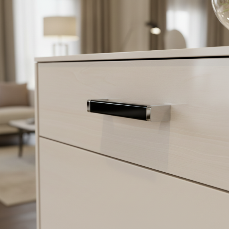 Ez a dizájnos fogantyú az acél eleganciáját és a műanyag praktikusságát ötvözi, hogy egy modern kiegészítőt hozzon létre, amely bármely bútordarabot feldob. Kiváló minőségű anyagainak köszönhetően tartós, kellemes tapintású és mindennapi használatra alkalmas.