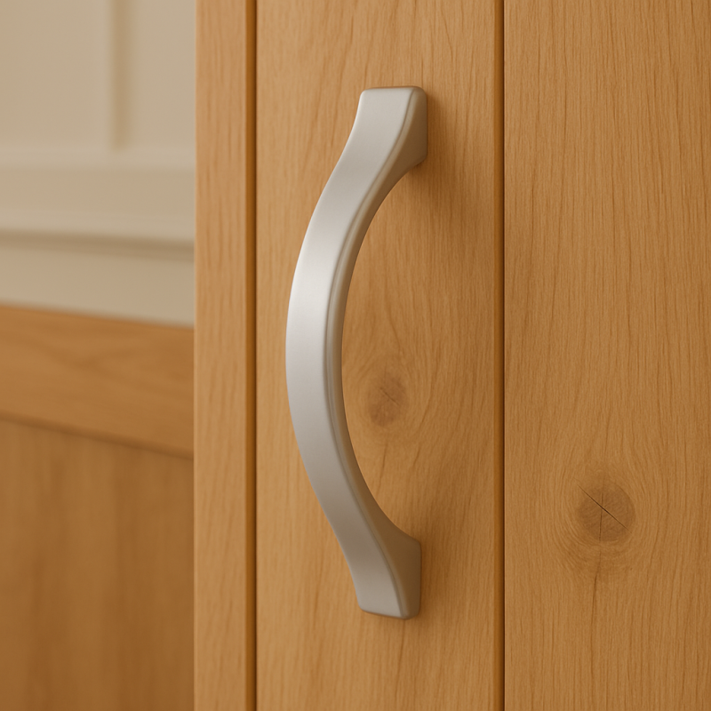 Az ívelt kialakítású AGEL fogantyú stílusos megoldás, amely finom eleganciát kölcsönöz bútorainak, és praktikus a mindennapi használatban. Kiváló minőségű kivitelezésének és ergonomikus formájának köszönhetően kényelmesen megfogható és esztétikus a konyhában, a nappaliban és az irodában.