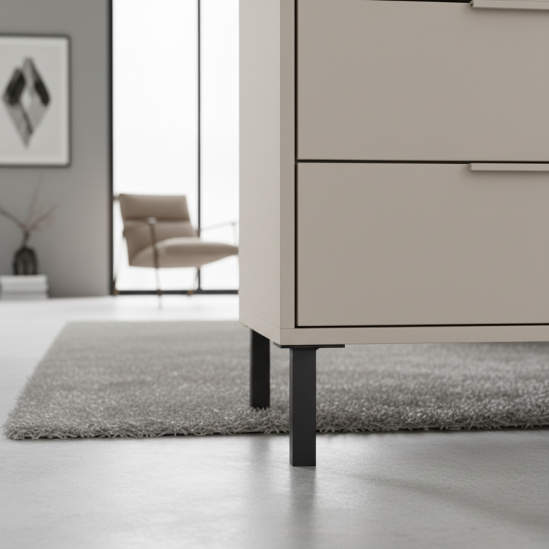 ALOGAN egy modern design bútorláb, amelyet komódok, szekrények vagy más típusú bútorok alá terveztek. A minimalista szögletes profil letisztult kialakítással kombinálva elegáns megjelenést és stabilitást kölcsönöz a bútoroknak.