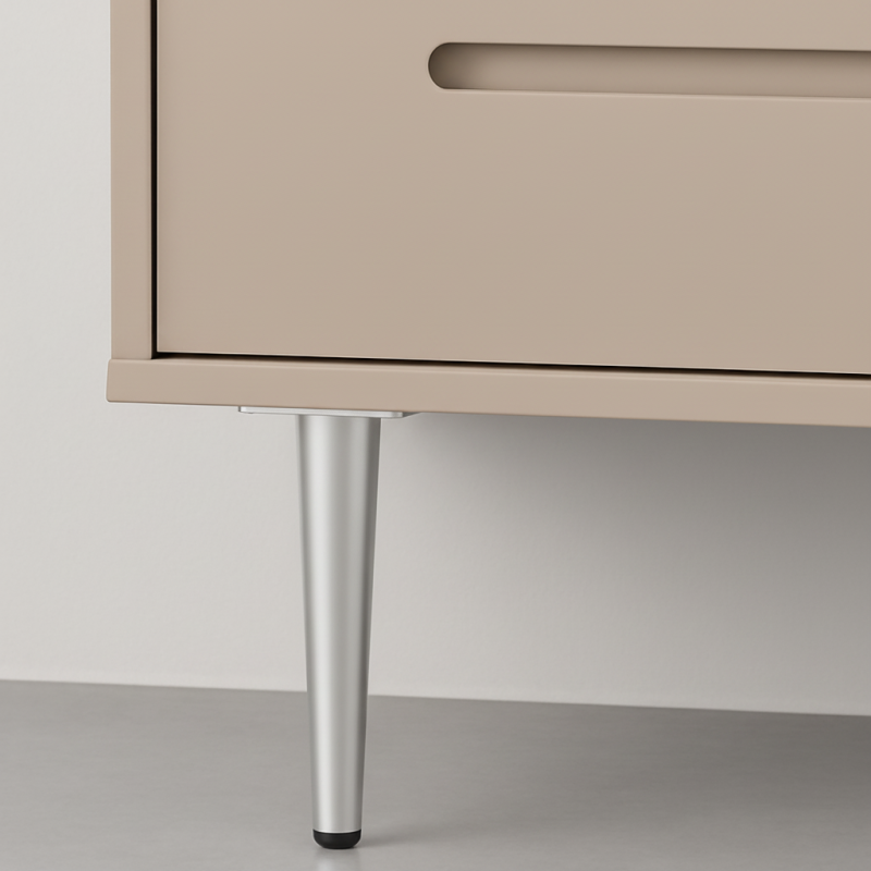 A GLOBAL bútorláb matt króm kivitelben modern, elegáns és egyben visszafogott dizájnelem, amely számos bútortípushoz illeszkedik. Finoman szűkülő formája időtlen hatást kelt, és vizuális könnyedséget kölcsönöz a bútornak zavaró csillogás nélkül. A matt króm ideális olyan enteriőrökbe, ahol a kifinomult és letisztult megjelenés az előnyben részesített.