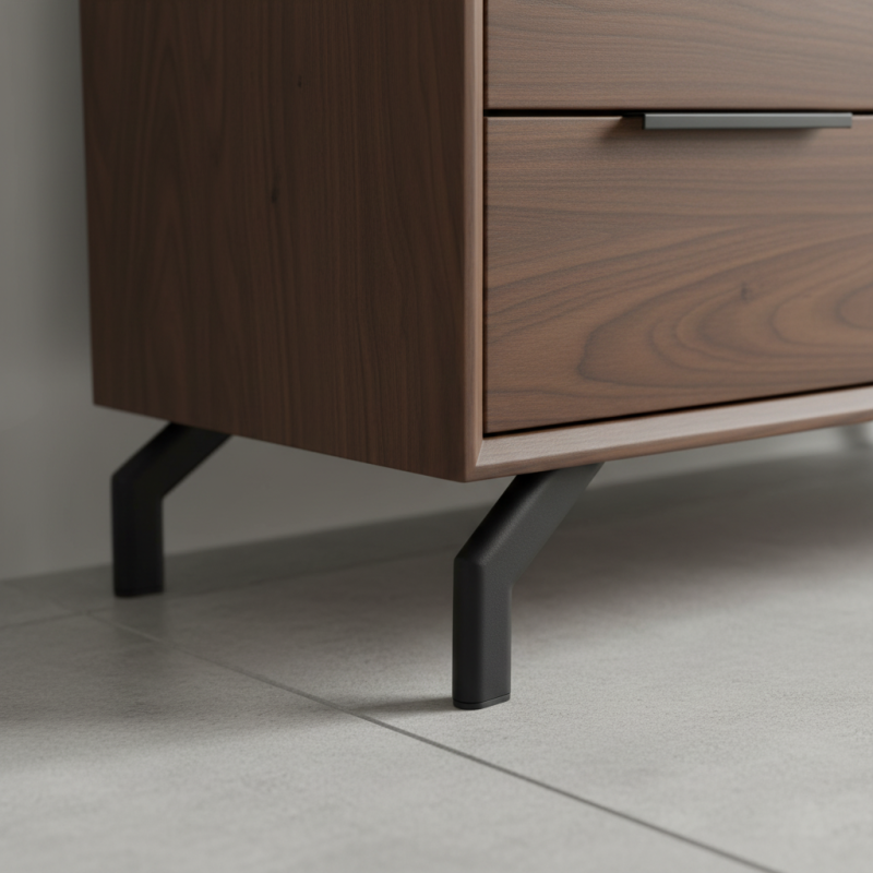 A matt fekete felület remekül kombinálható fa dekorral, fehér bútorral és sötét felületekkel is. A láb ideális például komódokhoz, szekrényekhez, TV-állványokhoz vagy modern nappali bútorhoz.