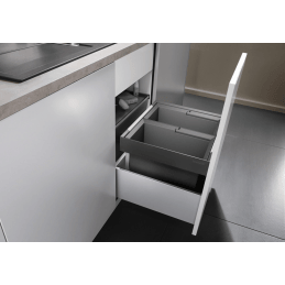 Blanco Flexon II 50/2 egy praktikus és áttekinthető hulladékválogató rendszer, amelyet alsó konyhaszekrények fiókjába való beépítésre terveztek. A két, egyenként 2 × 19 literes edénynek köszönhetően elegendő kapacitást kínál a mindennapi szelektív hulladékgyűjtéshez a modern háztartásokban.