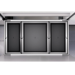 A rendszer 80 cm széles szekrényekhez alkalmas, felső fedél nélkül szállítva, ami lehetővé teszi a fióktípushoz való rugalmas igazítást.