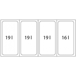 Edények űrtartalma: 3 × 19 l + 1 × 16 l