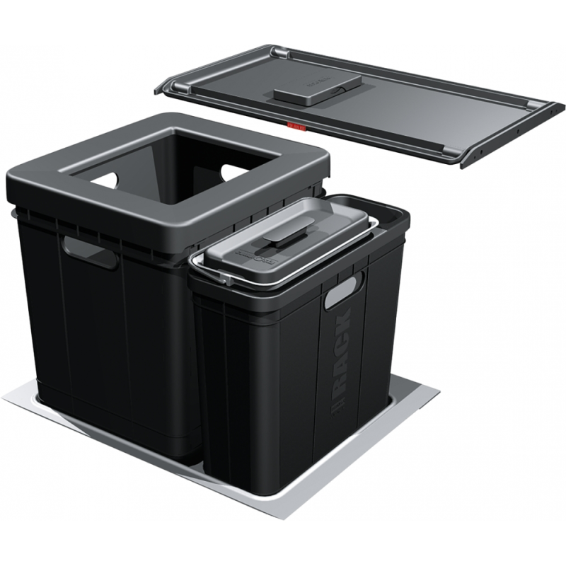 A Franke Sorter 350-60 Composta tartalmaz egy 40 literes műanyag szemetesládát, amelybe akár két zsák is elfér, valamint egy további 5,5 literes szemetesládát a biohulladék számára. Ez hatékony megoldást kínál a kettős hulladékválogatásra.