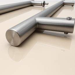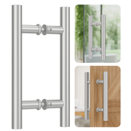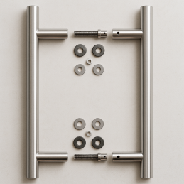 A fogantyú tartós anyagból készült, precíz felületkezeléssel, amely hosszú élettartamot és kényelmes használatot biztosít. A szerelés egymással szemben történik – a készlet 2 darab fogantyút tartalmaz. A csomagban tömítés is található az üvegre történő szereléshez, amely védi a felületet a sérülésektől.
