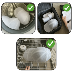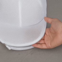 Ezzel a segédeszközzel nem kell többé kézzel mosni a sapkákat. Csak helyezd a sapkát a védő ketrecbe, zárd le a hálót, és tedd a mosógépbe – biztonságosan, gyorsan és a forma sérülése nélkül.