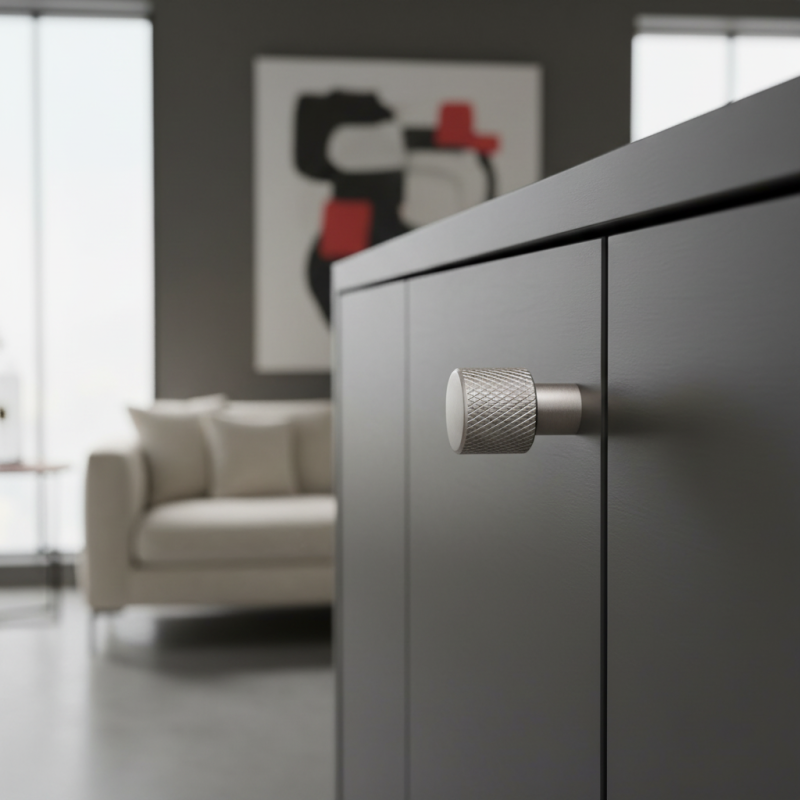Indusztriális fogantyú INDUST I. kivitelben nemesacél matt modern ipari stílust hoz elegáns és időtlen szatén felülettel. A jellegzetes bordázott (knurled) felület technikai megjelenést, kiváló fogást és egyedi dizájn akcentust ad a fogantyúnak.