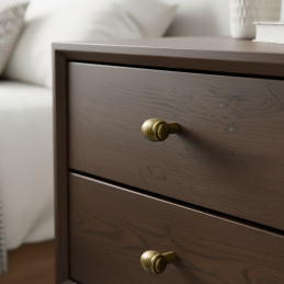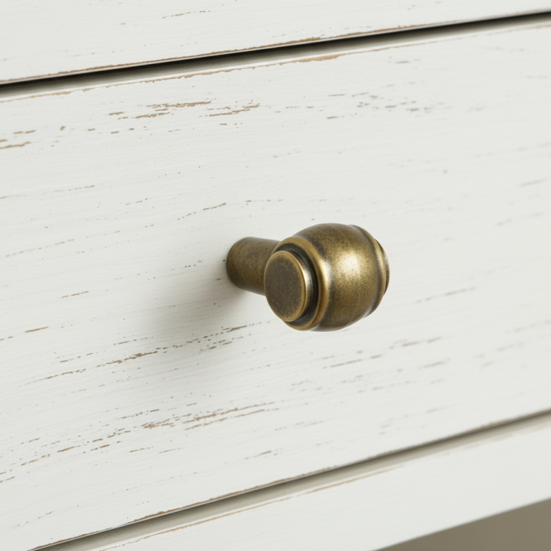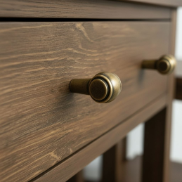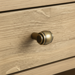 A RUSTICALE gomb fogantyú antik sárgaréz felülettel stílusos kiegészítő vintage és rusztikus hangulattal. Kiemelkedik precíz fém kidolgozásával és jellegzetes hengeres formájával, amely egyedi és időtálló megjelenést kölcsönöz a bútornak. A meleg antik sárgaréz árnyalat szépen harmonizál a fával és a sötét felületekkel, kiemeli a hagyományos és az ipari enteriőr stílust is.