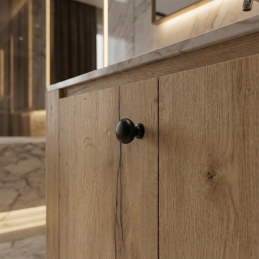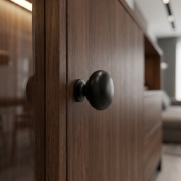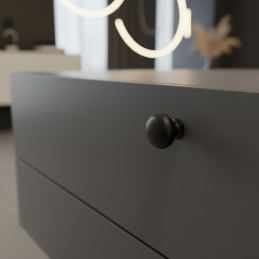 Az VALEA bútorgomb elegáns matt fekete kivitelben egyszerű és stílusos kiegészítő, amely különféle bútorokhoz alkalmas. Klasszikus lekerekített formájának és matt felületének köszönhetően modern és időtlen hatást kelt, könnyen kombinálható fa dekorral, fehér és sötét bútorokkal is.
