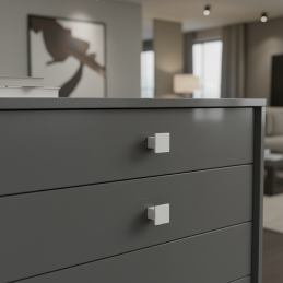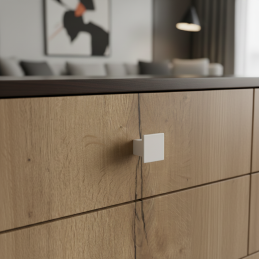 A AXON gombfogantyú fehér matt kivitelben stílusos kiegészítője a modern és klasszikus bútoroknak egyaránt. Tiszta, szögletes kialakítása elegánsan, visszafogottan hat, és tökéletesen illeszkedik a világos enteriőrökhöz. A minőségi kidolgozás kényelmes fogást és hosszú élettartamot biztosít, így ideális választás konyhákba, fürdőszobákba, gyerekszobákba vagy irodabútorokhoz.