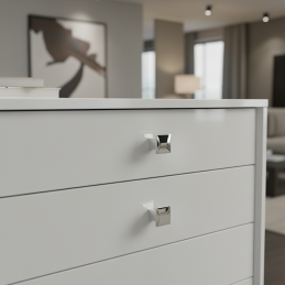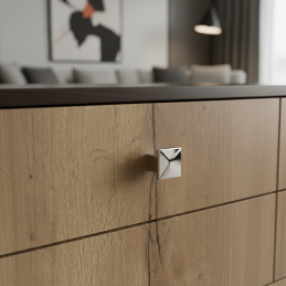 Az AXON gombfogantyú fényes króm kivitelben elegáns és időtlen elemet képvisel, amely luxus megjelenést kölcsönöz bútorainak. A szögletes forma letisztult vonalakkal modern hatást kelt, míg a magasfényű felület különleges vizuális hangsúlyt ad a térnek. Precíz kidolgozásának és masszív szerkezetének köszönhetően alkalmas konyhai, fürdőszobai, nappali és irodabútorokhoz is.