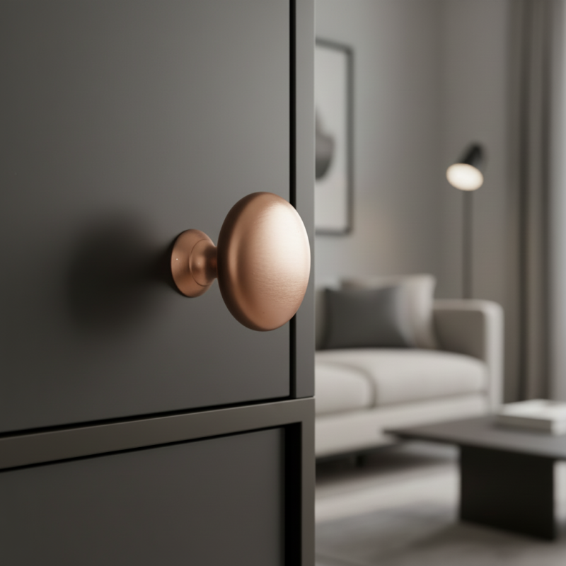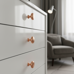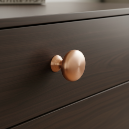 Az elegáns és modern BEA gomb réz kivitelben ideális kiegészítő bármely bútorhoz minden enteriőrben. Finoman lekerekített formája és matt felülete időtlen megjelenést kölcsönöz a szekrényeknek vagy fiókoknak, egy csipetnyi luxussal.