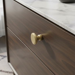 Az elegáns TINA bútorfogantyú – gomb csiszolt arany kivitelben időtlen kiegészítő, amely finom, luxusos hangsúlyt ad a bútornak. Klasszikus, kerek formája modern kidolgozással kiválóan illik modern, elegáns és hagyományos enteriőrökbe is.
