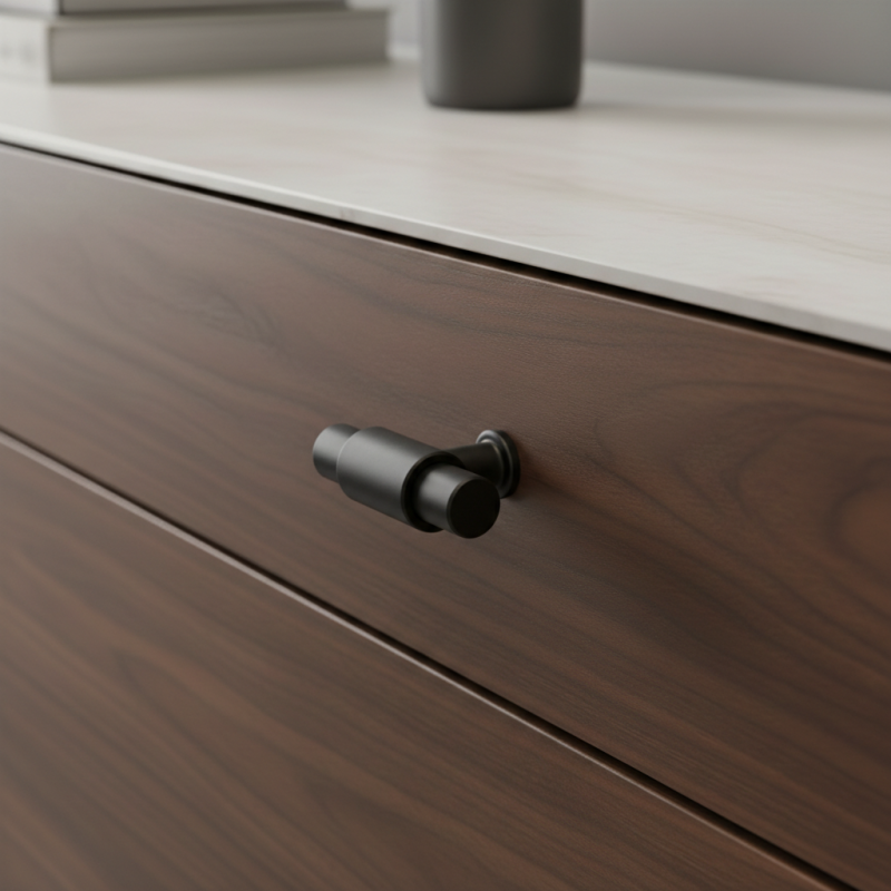 A gomb kiváló minőségű ötvözetből készült, amely nagy szilárdságot, stabilitást és hosszú élettartamot biztosít még mindennapos használat mellett is. A matt fekete felületkezelés kifinomult hatású, praktikus a karbantartás szempontjából, és ellenáll a szokásos kopásnak.