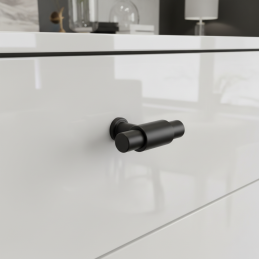 Modern fogantyú – TINA DUO gomb fekete matt kivitelben elegáns és karakteres részlet, amely remekül kiegészíti a minimalista, ipari és modern enteriőröket is. Kettős hengeres formája harmonikus és időtlen hatást kelt, így alkalmas konyhai, fürdőszobai és lakószobai bútorokhoz is.