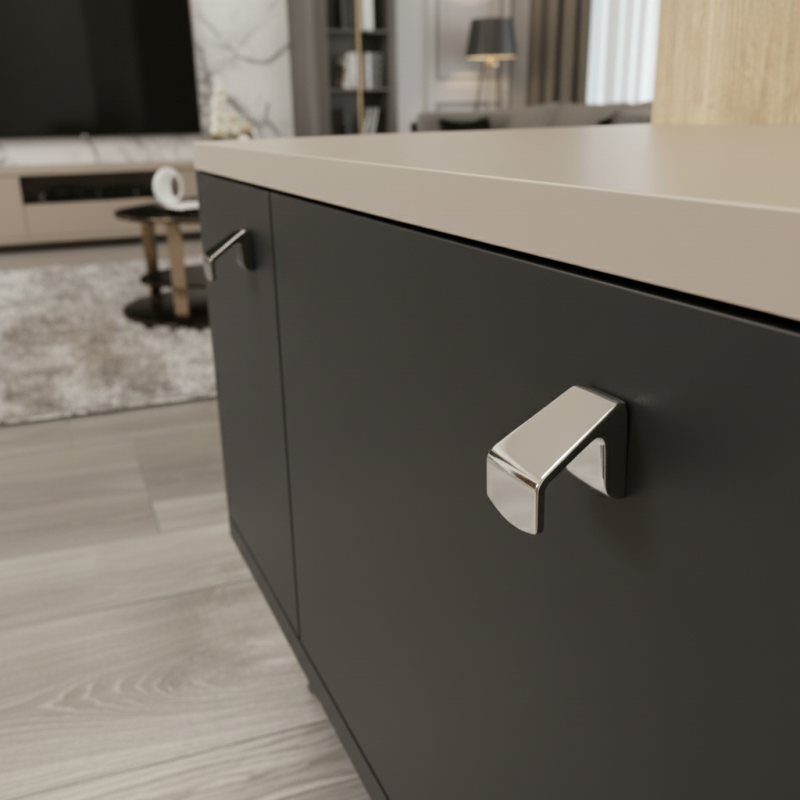 Minimalista formájának és magas fényének köszönhetően modern, letisztult hatást kelt, és exkluzív megjelenést kölcsönöz a bútornak.