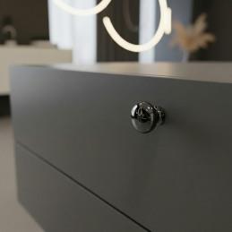 A VALEA gomb fekete króm kivitelben elegáns és modern megjelenést kölcsönöz a bútornak, miközben kényelmes mindennapi használatot biztosít.