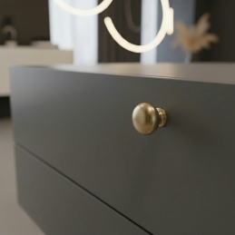 A VALEA gomb arany szálcsiszolt kivitelben luxus és modern megjelenést kölcsönöz a bútornak, és egyben kényelmes mindennapi használatot biztosít.