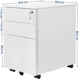 Optimális méret: A 39 × 52 × 60 cm-es (L x Sz x K) méretekkel ez a konténer tökéletesen elfér az íróasztala alatt, miközben rengeteg helyet biztosít az összes lényeges dolog tárolására.