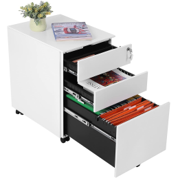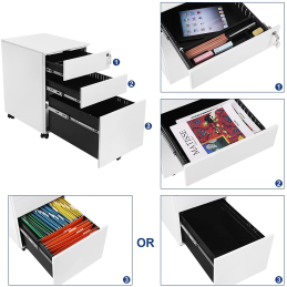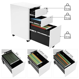 Nagy teherbírás: A felső fiókok maximális statikus teherbírása 15 kg, a nagy alsó fióké pedig akár 20 kg is lehet, így ez a tároló a nehéz iratgyűjtőktől kezdve a különféle irodai kellékekig mindent elbír.