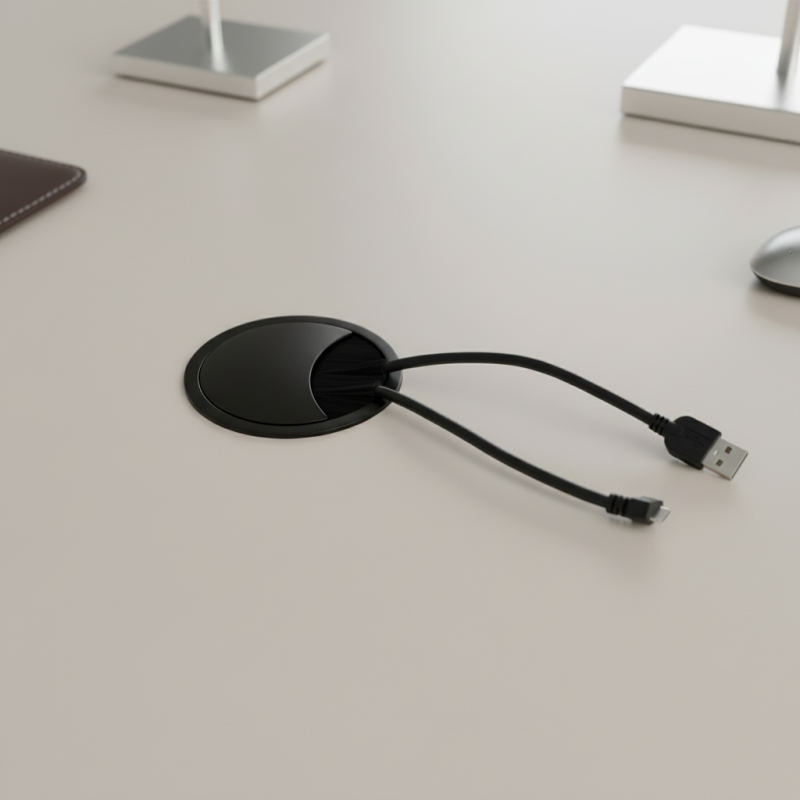 A modern fekete LOOP 80 kábelátvezető elegáns kiegészítője az íróasztalnak vagy az irodabútornak. A matt fekete színnek köszönhetően minimalista hatást kelt, és tökéletesen illik a sötét bútorokhoz vagy az ipari stílusú enteriőrhöz.
