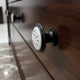 A CLOCK dizájnos fogantyú fekete kivitelben egy kivételes kiegészítő, amely azonnal felkelti a figyelmet az elegáns óralap motívummal. A kerámia és fém kombinációja nemcsak vizuális vonzerőt, hanem magas ellenállóságot és kiváló kidolgozást is biztosít. A fogantyú neves olasz gyártótól származik, ami precíz dizájnt és hosszú élettartamot garantál.