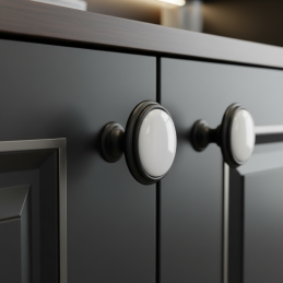 Az elegáns FRESNO fogantyú fekete kivitelben ötvözi a minőségi fém testet a kerámia dekorral, így időtlen és univerzális kiegészítőt teremt, amely modern és klasszikus enteriőrökbe egyaránt illik. Harmonikus formája és finom vonalai eleganciát kölcsönöznek a bútornak, miközben a tartós anyagok hosszú élettartamot és kényelmes használatot biztosítanak.