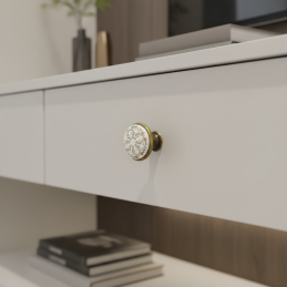 Az ORIENT elegáns bútorgomb porcelán és fém alap kombinációjával, antik sárgaréz felületkezeléssel. A fehér alapon finom arany ornamentika luxus és egyben romantikus megjelenést kölcsönöz a fogantyúnak. Ideális választás rusztikus, vintage és provanszi enteriőrökbe.