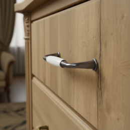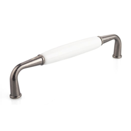 Elegáns fogantyú BLANCA antik ezüst kivitelben antik ezüst fehér porcelánnal kombinálva gyönyörű kiegészítője a rusztikus, vintage vagy provanszi stílusú enteriőröknek. Finoman patinázott felülete autentikus retro megjelenést kölcsönöz a fogantyúnak, a porcelán közép pedig tiszta és időtlen hatást kelt.