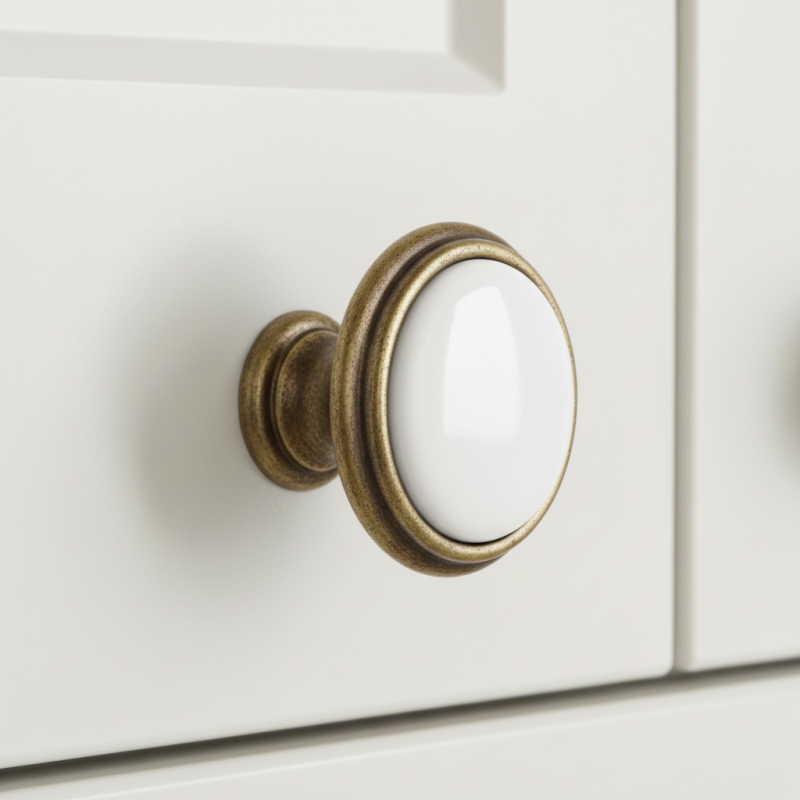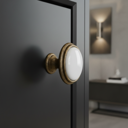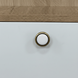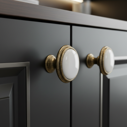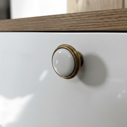 Az elegáns FRESNO fogantyú antik sárgaréz kivitelben ötvözi a kiváló minőségű fémtestet a kerámia dekorral, így időtálló és univerzális kiegészítő, amely modern és klasszikus enteriőrökbe egyaránt illik. Harmonikus formája és finom vonalai eleganciát kölcsönöznek a bútornak, miközben a tartós anyagok hosszú élettartamot és kényelmes használatot biztosítanak.