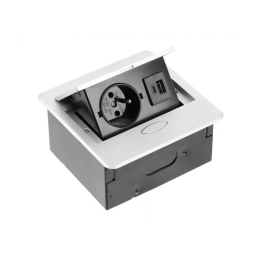 A kompakt elektromos billenő aljzat BOX MINI alumínium kivitelben modern és ergonomikus dizájnt kínál, amely alkalmas íróasztalba, konyhapultba vagy bútorba (pl. nappali fal, irodabútor) történő beépítésre. A nyitás egy gomb egyszerű megnyomásával történik, a zárás kézi visszacsukással.