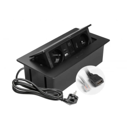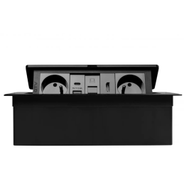 Modern és ergonomikus felnyitható elektromos aljzat, amely munkalapba, konyhapultra vagy irodabútorba szerelhető. Az erősáramú, töltő és adatportok kombinációjának köszönhetően ideális irodákba, otthoni dolgozószobákba, nyitott munkaterületekre vagy konferenciaasztalokhoz is.