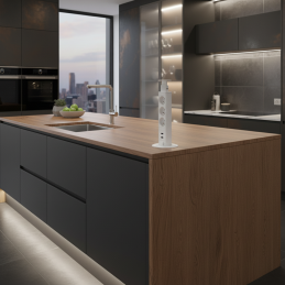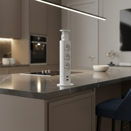 A modern kihúzható aljzat elegáns fehér kivitelben praktikus megoldás konyhákba, irodákba vagy munkaasztalokhoz. Benyomás után elrejthető a munkalapba, így helyet takarít meg és esztétikusan tiszta megjelenést biztosít. Egyetlen nyomással kihúzható, és azonnal használatra kész.