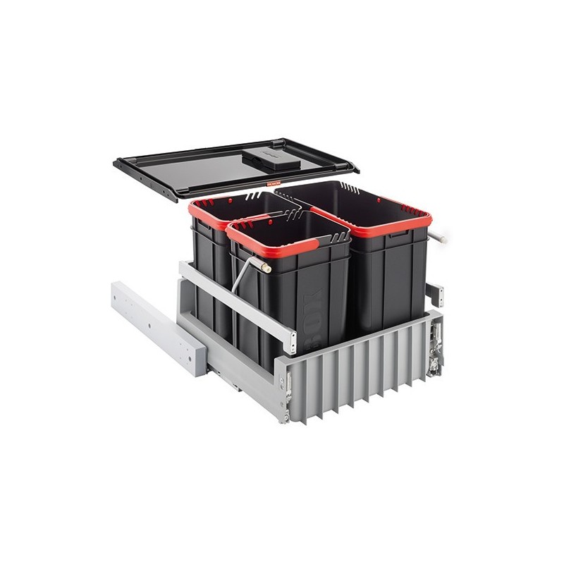 Szortírozó két kosárral 2 x 10 + 1 x 22 l, zárható fedéllel, aktív szénnel, 450 mm széles szekrényhez.