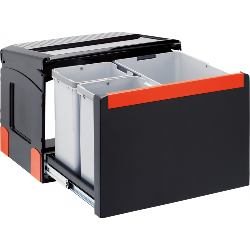 A Franke Sorter Cube 50 elegáns fekete és szürke kombinációban kapható, így bármilyen konyhai kialakításhoz illik. A könnyű kezelhetőséget biztosító kézi kihúzással ez a kukarendszer nagyszerű kiegészítője lesz konyhájának.