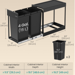 A két különálló edénynek köszönhetően kényelmesen válogathatja a kommunális és az újrahasznosítható hulladékot.
