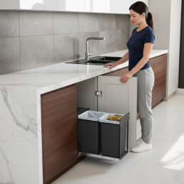 A GALANT 300 mm kompakt beépíthető szeméttároló rendszer ideális megoldás kisebb konyhaszekrényekhez. Hatékony hulladékválogatást tesz lehetővé, helyet takarít meg, és tisztán, rendezett módon, kellemetlen szagoktól mentesen tartja a konyhát.