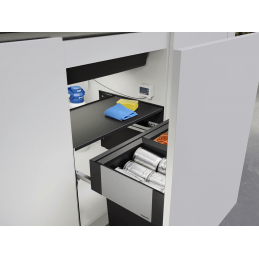 Teljesen betolva az edények lezáródnak, a tér tiszta és szagmentes marad. Előny továbbá a gyors keretösszeszerelés hosszas jelölés és előfúrás nélkül.