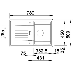 Blanco Zia 45 S egy modern gránit mosogató letisztult vonalakkal, amely minden konyhába illik. 780 × 500 mm méretével 45 cm-től széles szekrényekhez készült, és ideális arányt kínál a medence és a csepegtetőfelület között.