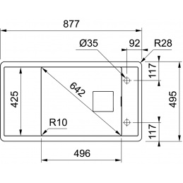 A mosogató külső mérete: 877 × 495 mm.